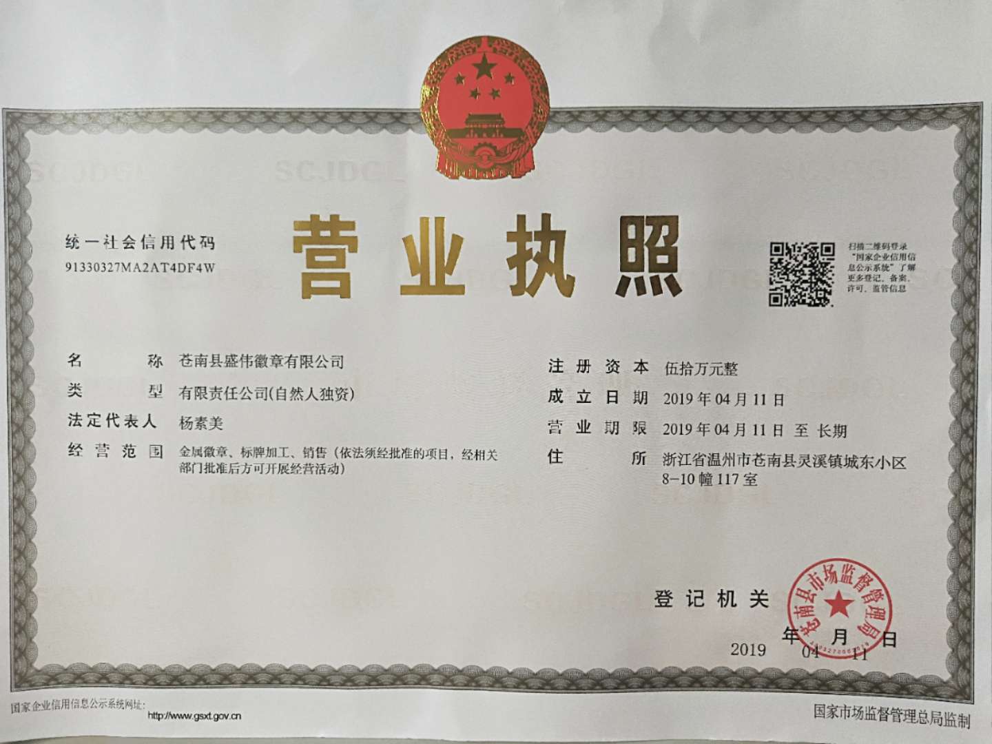 蒼南縣盛偉徽章有限公司成立于2019年,是一家專注于警徽產(chǎn)品設(shè)計(jì)、、銷售和產(chǎn)品維護(hù)的徽章廠家。多年來,我們一直嚴(yán)格要求自己,以優(yōu)良產(chǎn)品和誠信為本的理念經(jīng)營,不斷推動(dòng)企業(yè)的發(fā)展壯大。我們注重人才培養(yǎng),不斷引進(jìn)先進(jìn)的經(jīng)營理念和管理模式,以滿足企業(yè)長期發(fā)展和擴(kuò)大的需求。